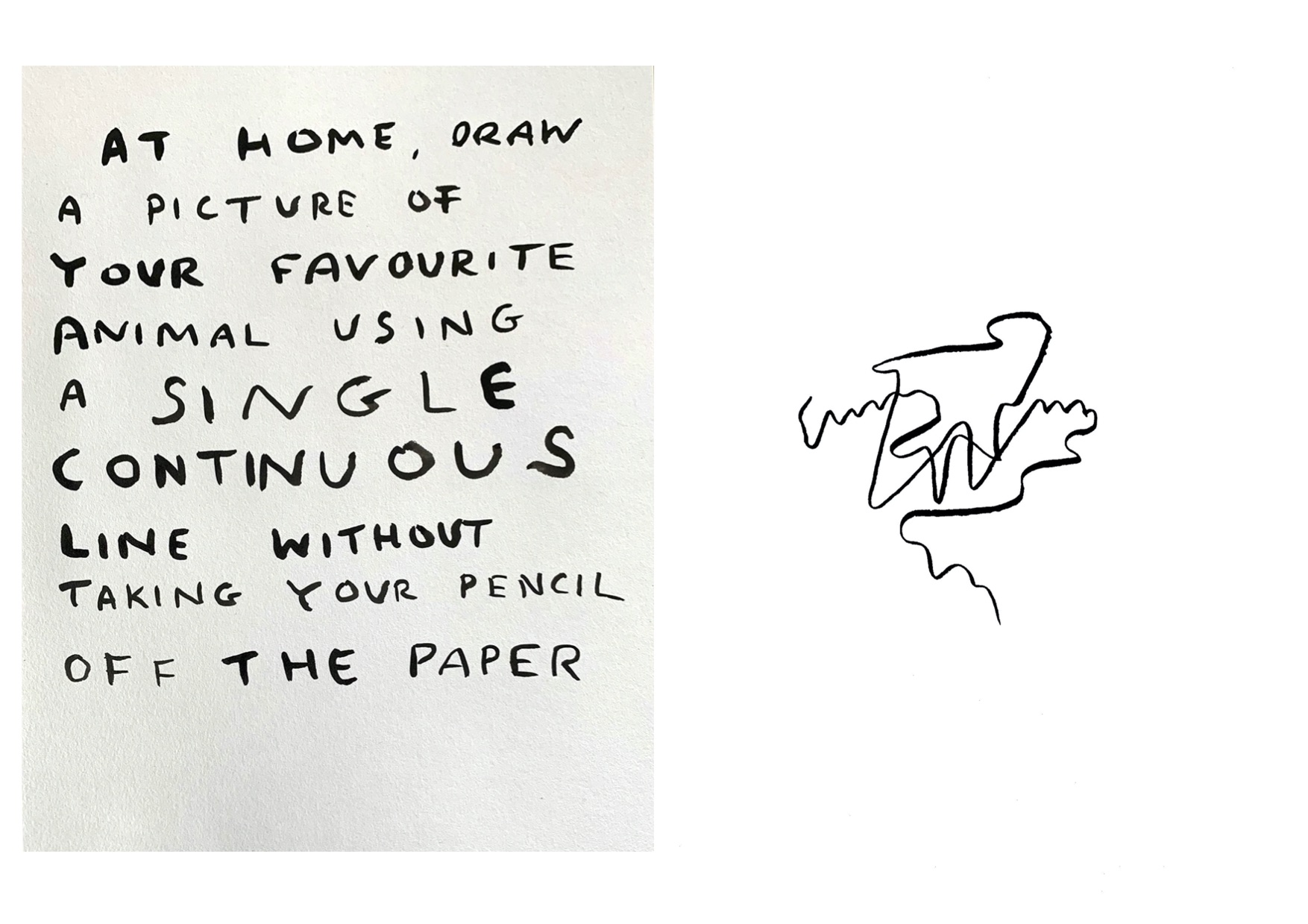 Commissioned by De La Warr Pavilion for The Big Draw 2020 distributed digitally via social media and printed copies via schools, food banks and family art packs.