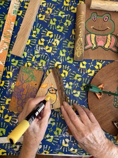 Working with the residents of a care home to make collaborative wooden sculptures for their garden.