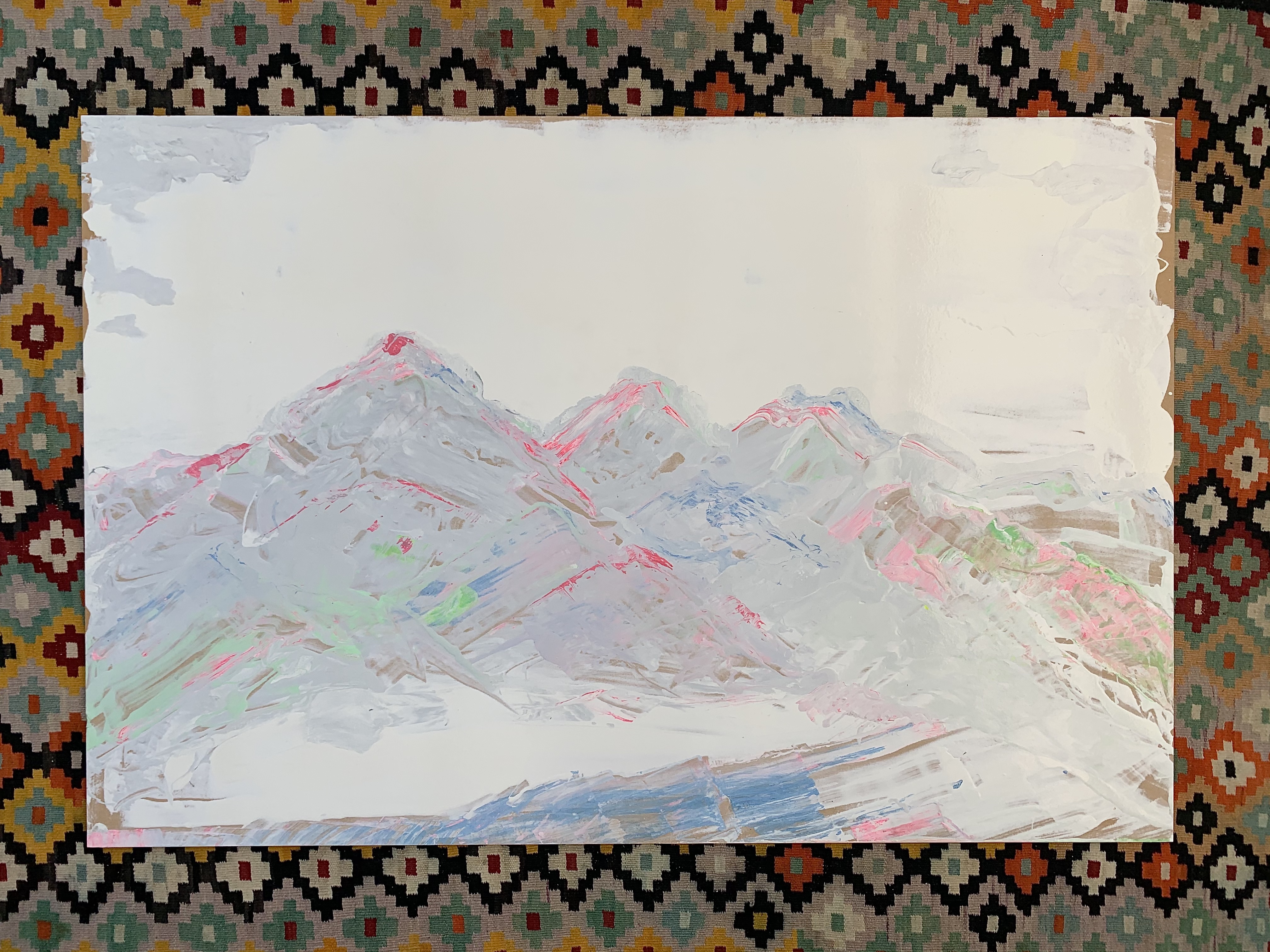 A seemingly endless exercise in wellness, generating imagined vistas in acrylic and gloss emulsion on wood in various sizes.